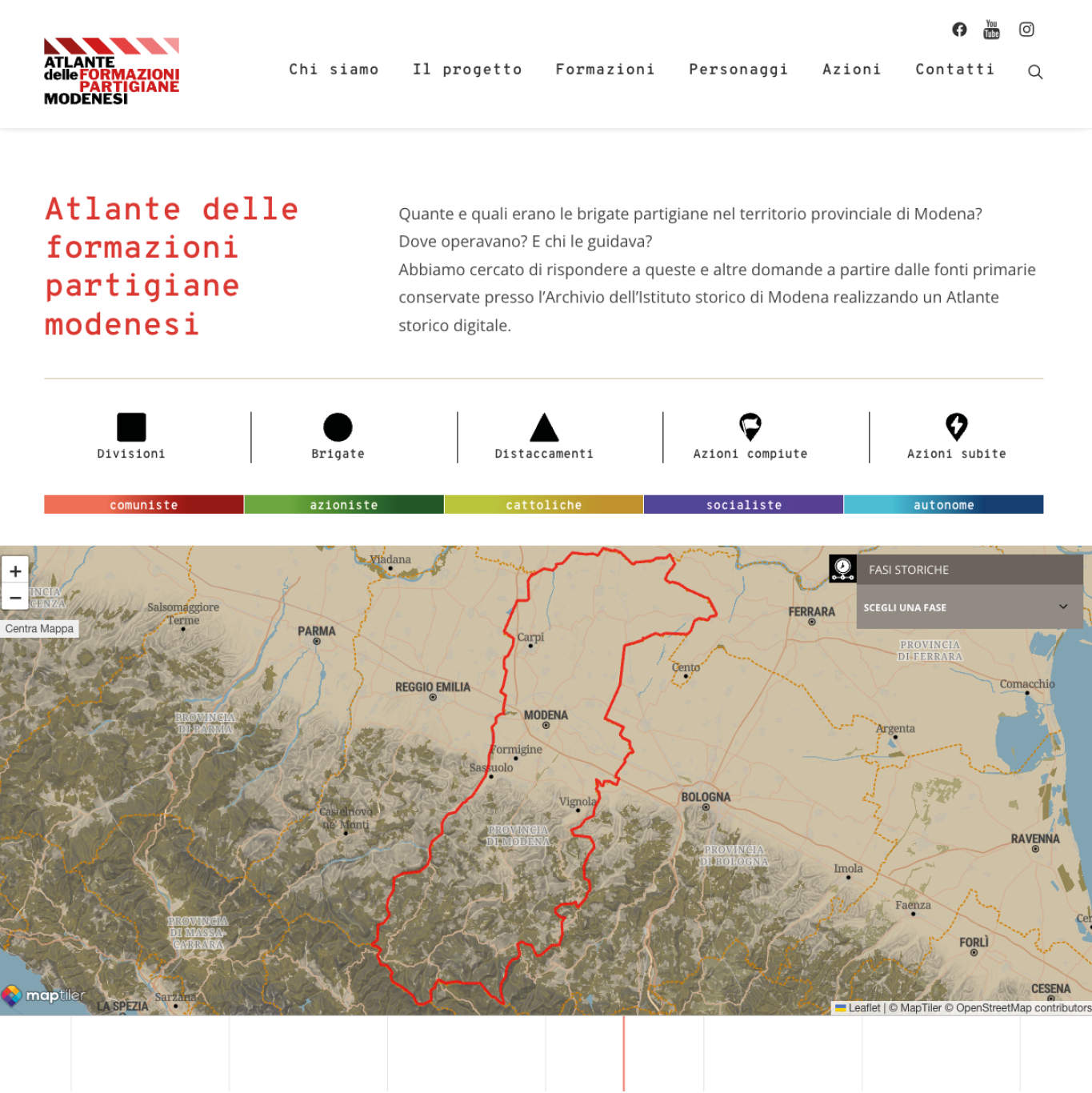 Dal portale prendono le mosse progetti tematici di grande rilevanza. Il primo a vedere la luce – e uno degli esempi più significativi – è l’Atlante delle formazioni partigiane modenesi, una esperienza digitale e visuale che risponde a domande fondamentali: quante brigate partigiane operarono sul territorio? Dove agivano e chi erano i loro leader? Questo strumento mappa geograficamente e cronologicamente (attraverso 9 diverse fasi) le formazioni partigiane, restituendo con chiarezza l’evoluzione delle organizzazioni di Resistenza tra il 1943 e il 1945. Le biografie dei protagonisti e la descrizione delle azioni completano un quadro storico di grande valore scientifico e divulgativo.